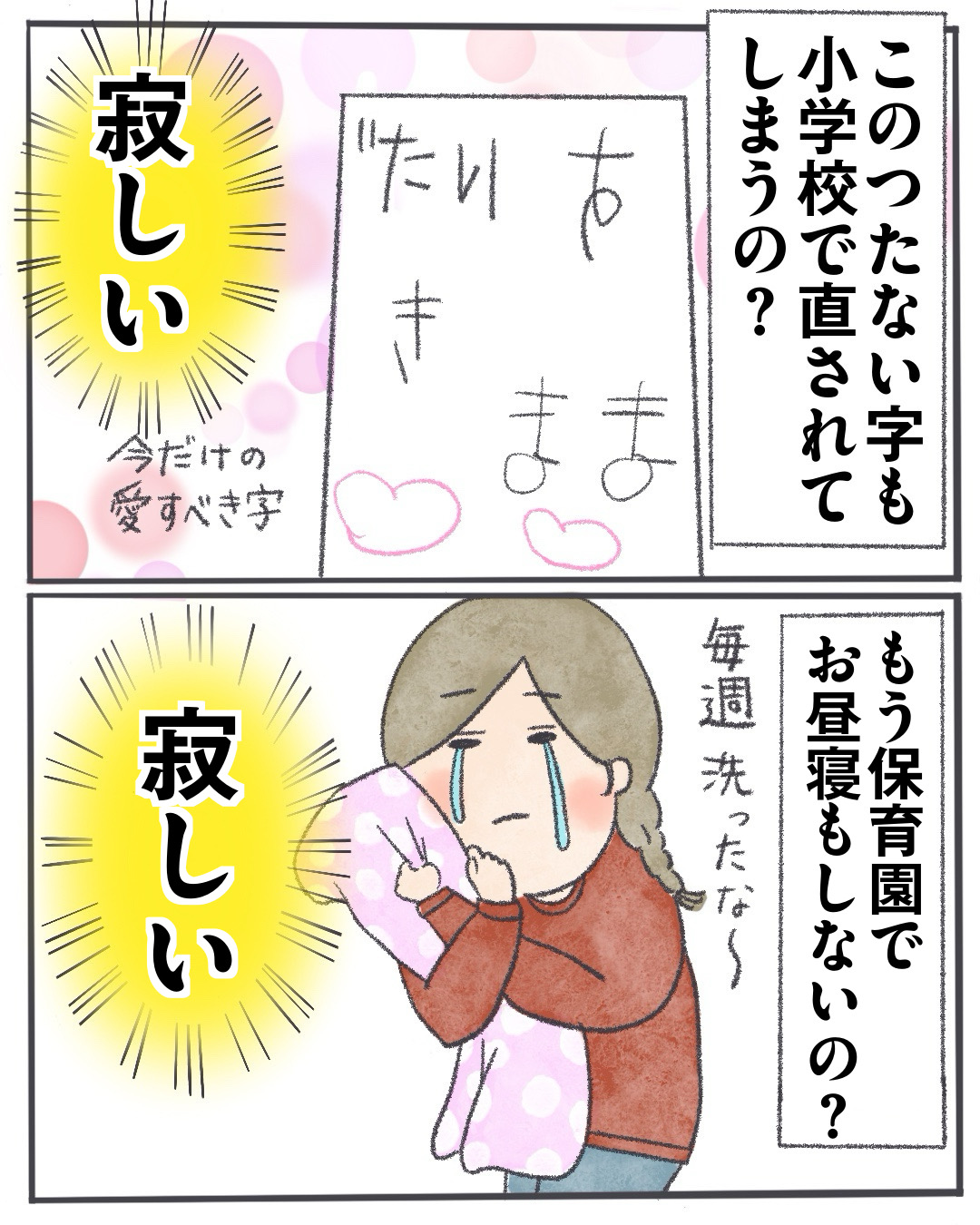 今回は年長さんの子をもつ母としての目線で今の時期のエモさを描いてみました♡